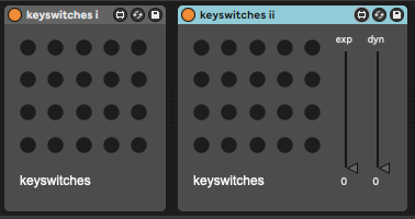 keyswitch ii has additional CC1 + CC11 sliders, useful for Expression + Dynamics controls familiar on the Spitfire Audio plugins.